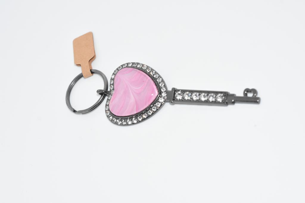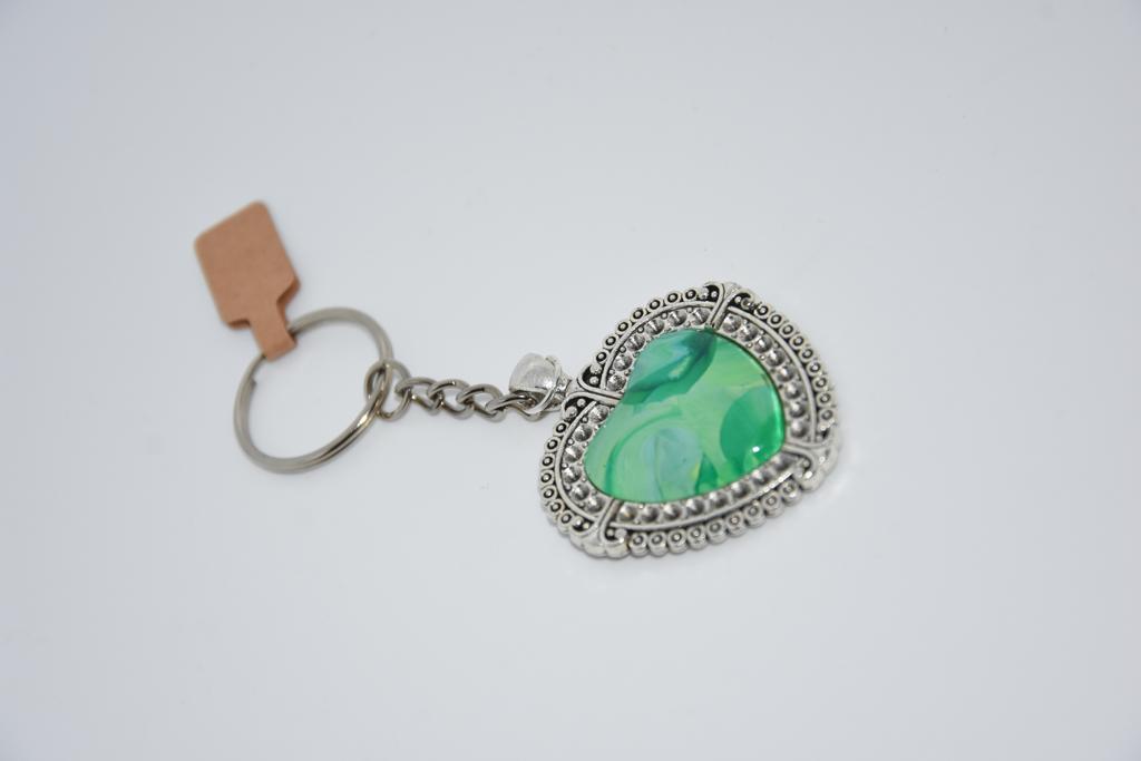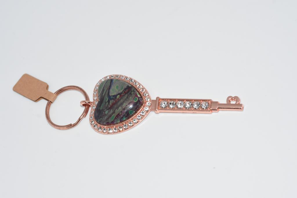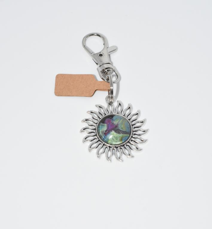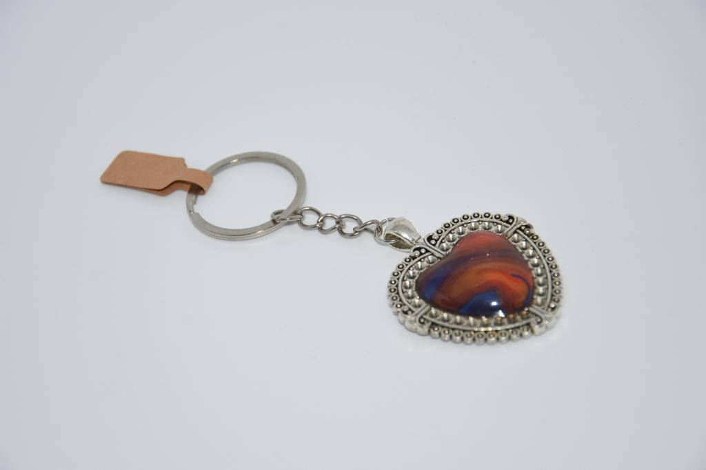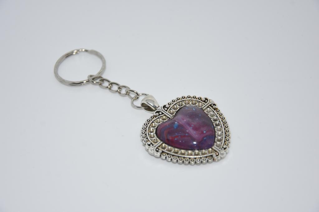 Silver based heart shaped keyring. Each containing a piece of unique art.