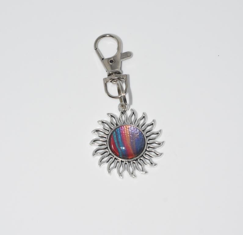 Small Sunshine Keyring with an eye catching colourful sunbeam centre.