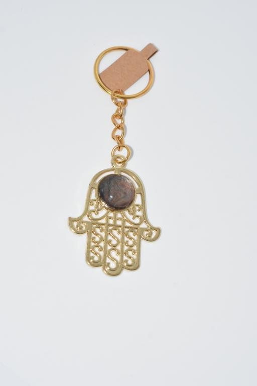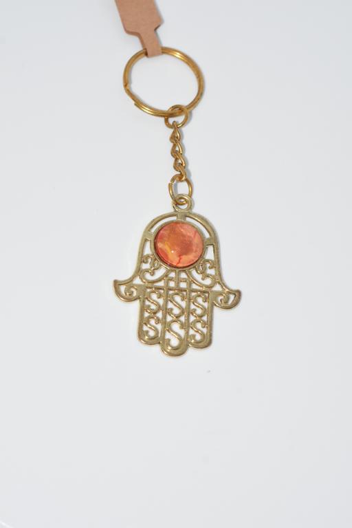 Gold colour base, Hamsa Hand keyring, with a unique art filled centre.